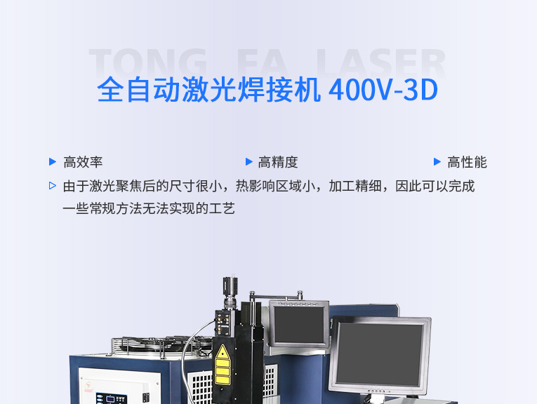 TFL-400V/500V-3D激光焊機是一款高穩(wěn)定性、大功率的焊機,滿足長時間生產的需要。大功率激光電源,大功率散熱系統(tǒng)滿足24小時大批量生產。機身采用高強度結構,保證精度、性能穩(wěn)定??刂葡到y(tǒng)是專為激光焊接量身定做的專業(yè)4軸控制系統(tǒng),穩(wěn)定性高,易學易懂易上手。擴展性強,可結合流水線、光電傳感器、氣動夾具等組合進行全自動無人值守式加工。