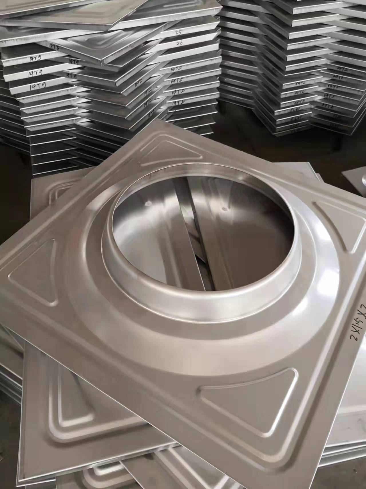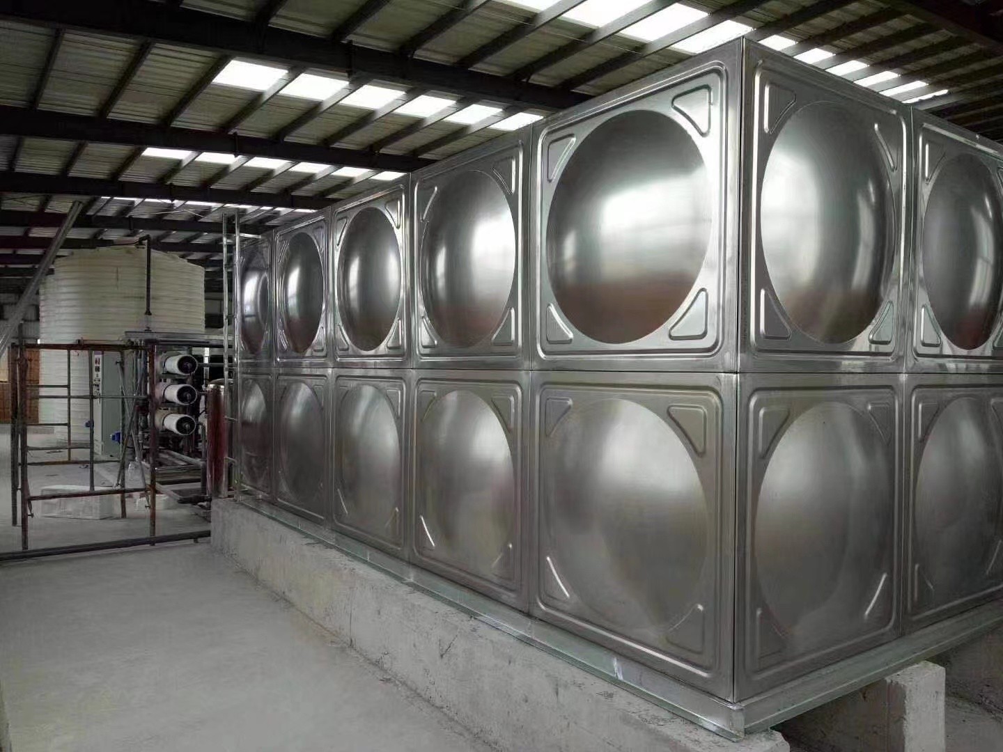 2、不銹鋼沖壓板:通過模壓成型,表面凸起狀,一部分為了保障水箱側面不隨著時間的增加而變形,一部分為了承壓能力與美觀程度。